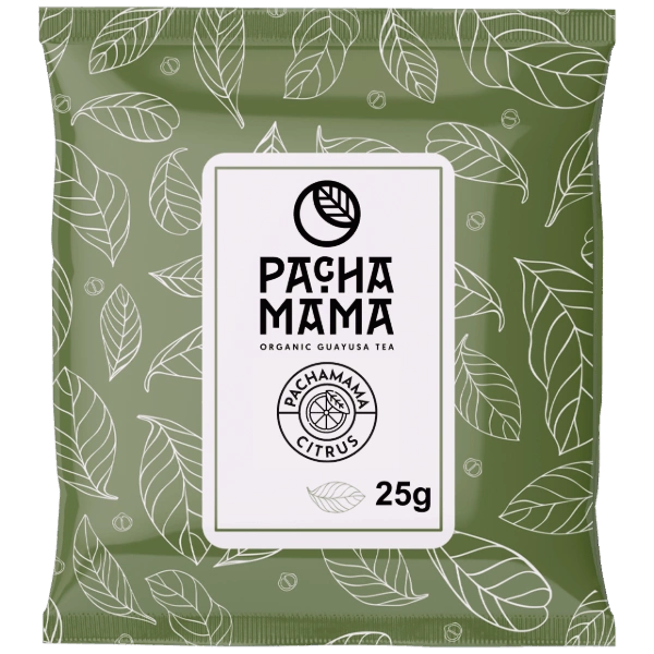 - Guayusa Pachamama Citrus to ekologiczna mieszanka łagodnej guayusy z miętą, hibiskusem, głogiem i olejkiem pomarańczowym, tworząca harmonijny, cytrusowy napar o naturalnym działaniu pobudzającym.